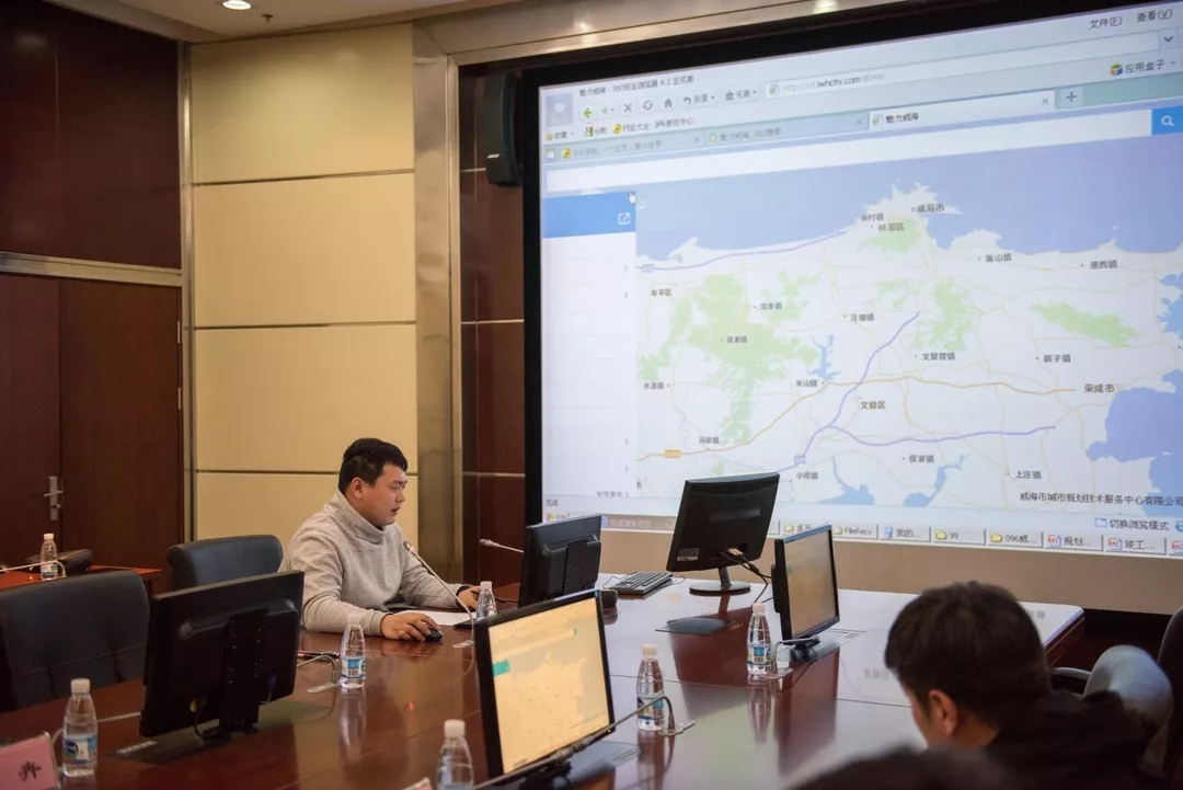 信息工程部田鑫展示公司现有成果:魅力威海网站、三维GIS平台、全景平台演示以及商业应用