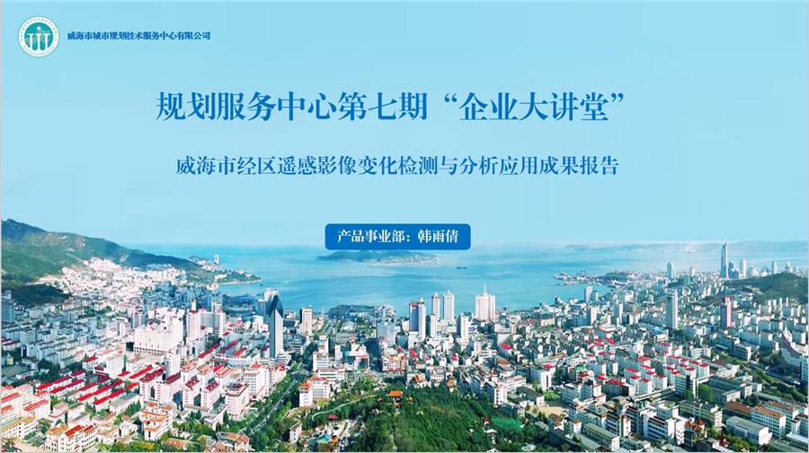 其次对《威海市经区遥感影像变化检测分析与应用成果》进行系统汇报,通过高分辨率遥感影像对威海市(以经济技术开发区为试点)用地分类和变化检测,变化检测专题信息的时空演变规律,讲述了该项目分析对威海市提高土地资源利用效率、提高社会经济效益、保护生态环境的重要意义,为城市发展提供了决策支持。