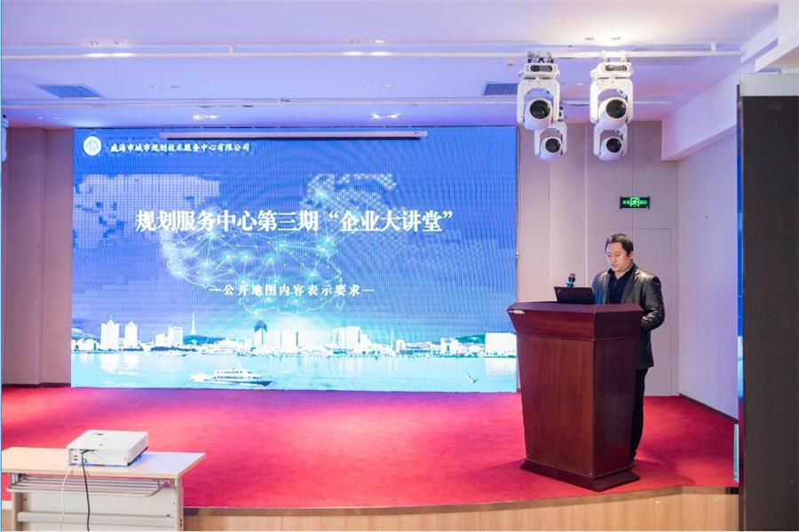 本期大讲堂由总工程师牛吉锋主讲,他以《公开地图内容表示要求》为主题进行授课,解读公开地图、可视化电子地图、出口地图和对外加工地图等重要概念,并对公开地图所要求保密的内容、部分内容属性有关要求和制度进行了梳理、汇总,总结了公开地图中容易忽视的涉密问题,并结合中心实际,着重对可视化电子地图表示要求、地图编制要求、资质申请标准及编制专业标准等进行了深入探讨。